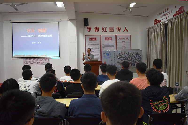 10月11日晚,基础医学院党委书记颜剑对2021级双立班全体同学作“七一”讲话精神专题宣讲。