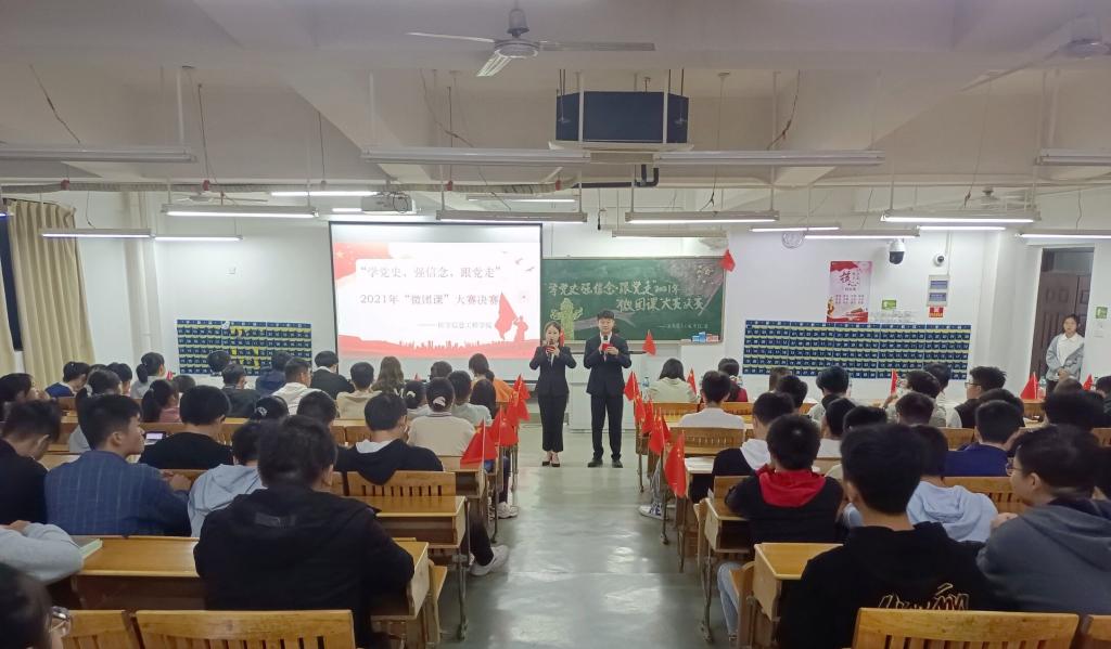 10月20日晚,医学信息工程学院在黄金校区举办主题为“学党史 强信念 跟党走”2021年“微团课”大赛。学工办辅导员和20级、21级学生代表200余人参加活动。