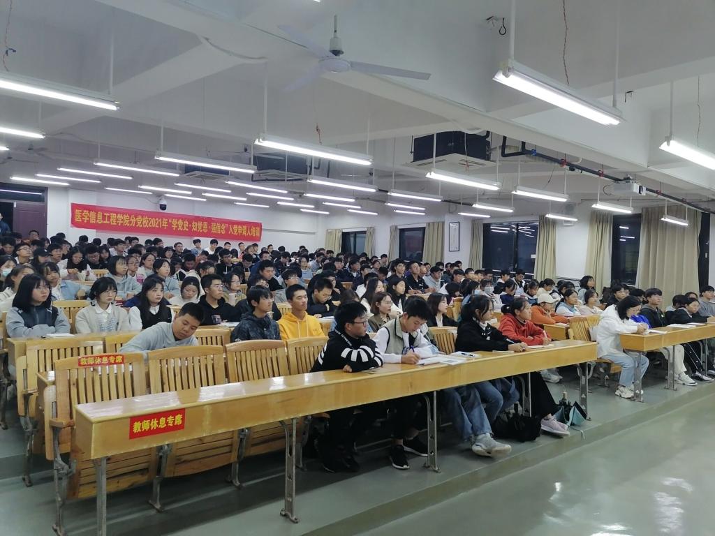 10月21日晚,医学信息工程学院院长盛瑶环为入党申请人开展社会主义核心价值观专题辅导,该院学工办辅导员、培训学员240余人参加培训。