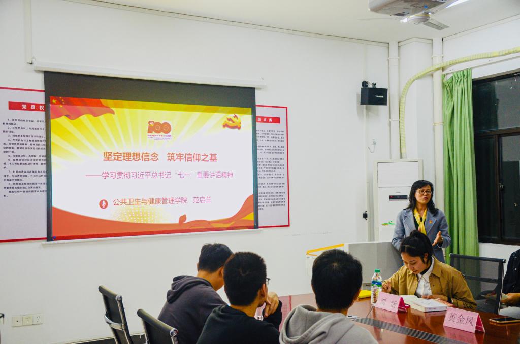 11月2日晚,公共卫生与健康管理学院在黄金校区举办2021-2022学年第一学期“学党史·知党恩·筑信仰”入党积极分子培训开班仪式暨第一讲。该院党委书记范启兰、学生党支部负责人,以及全体入党积极分子30余人参加。