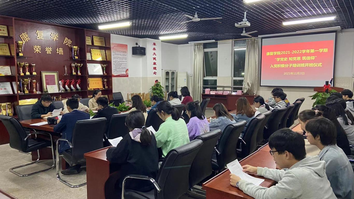 11月3日晚,康复学院举办2021-2022学年第一学期“学党史·知党恩·筑信仰”入党积极分子培训开班仪式暨第一次辅导。康复学院党委书记陈建文、学工办老师及全体入党积极分子参加。
