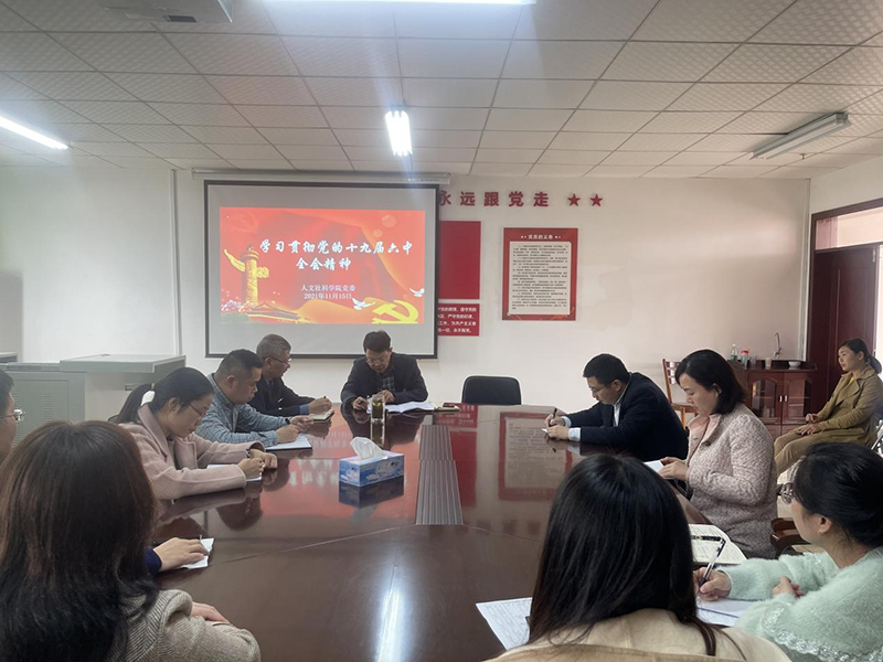 11月15日下午,人文社科学院党委专题学习传达了党的十九届六中全会精神,该院党政领导、全体教职工参会。