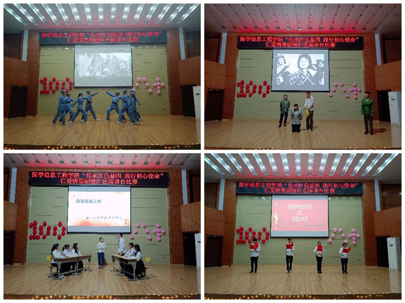 11月29日晚,医学信息工程学院在黄金校区举行“传承红色基因 践行初心使命”主题仁爱情景剧暨“红色演讲台”比赛,该院党委副书记雷音、学工办辅导员及300余名学生代表参加活动。
