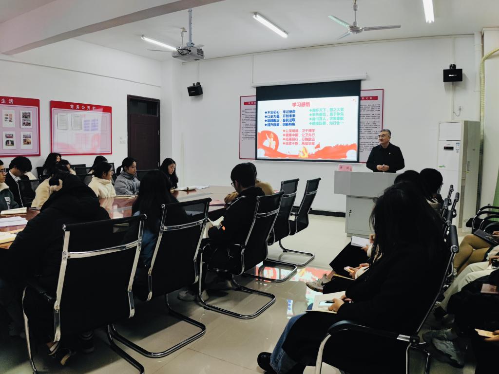 12月17日晚,公共卫生与健康管理学院院长黄诚给该院学生第三党支部宣讲党的十九届六中全会精神、省第十五次党代会精神,该支部全体党员、入党积极分子50余人参加。