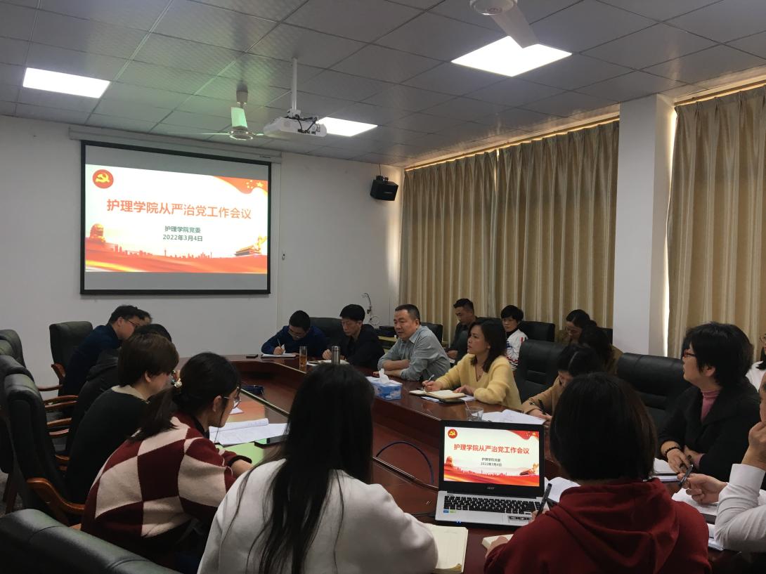 3月5日下午,护理学院召开从严治党工作会议暨教职工警示教育大会。该院全体教职工参会,会议由该院党委书记陈志远主持。