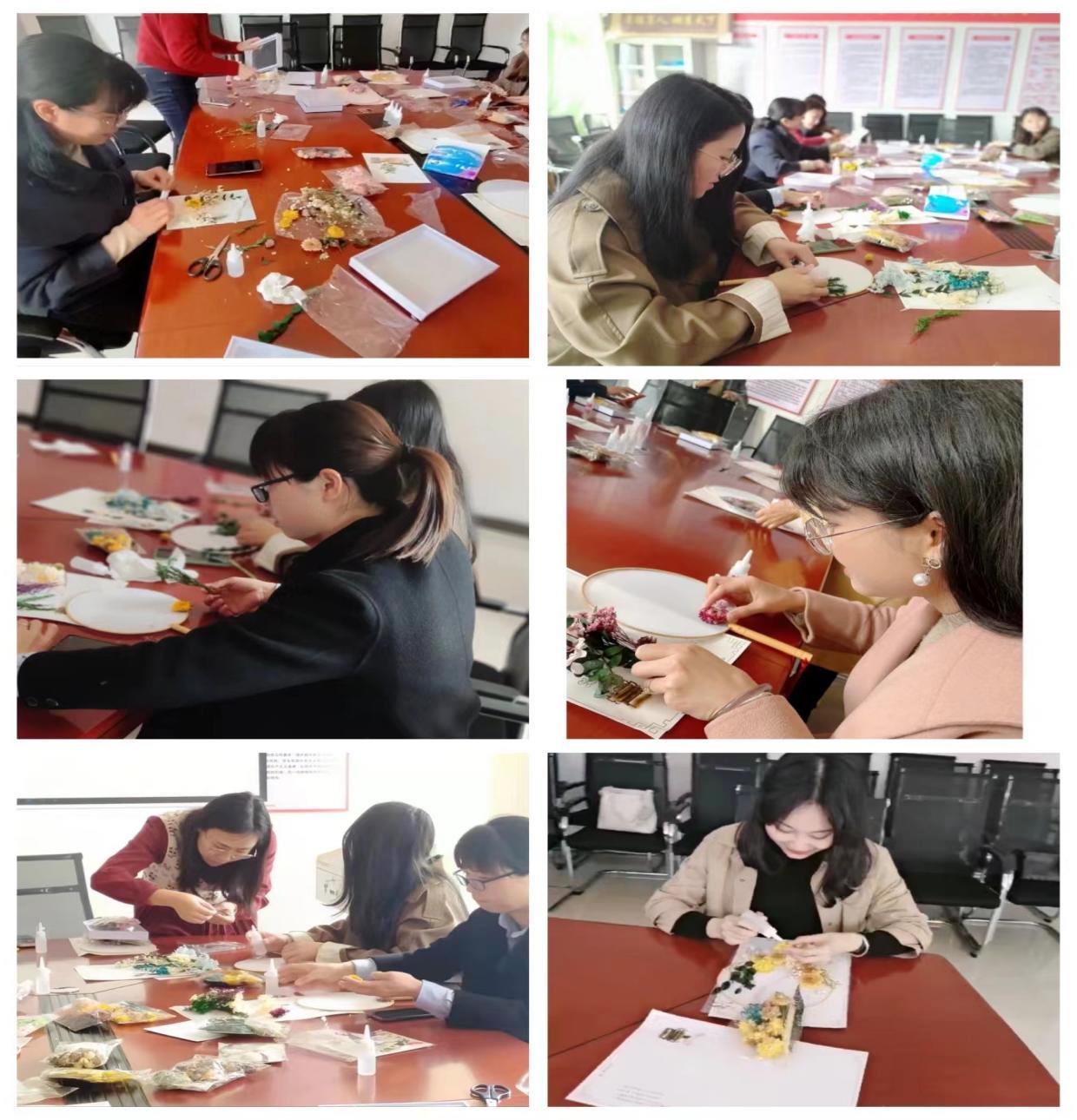 活动中,女教职工一起学习了干花DIY制作流程,并亲手制作干花作品,从开始构思设计到搭配色彩,把自己的创意和想法融入一朵朵干花中。活动结束后,大家纷纷拍照留念,记录下美好的瞬间。