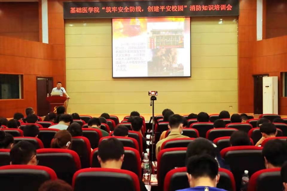 3月14日晚,基础医学院在黄金校区开展“筑牢安全防线 创建平安校园”消防安全知识培训会。该院党委副书记刘志春、学工办全体辅导员以及2021级学生参加培训,同时通过网络直播的方式向全院师生转播。培训由学校保卫处石爱平主讲。