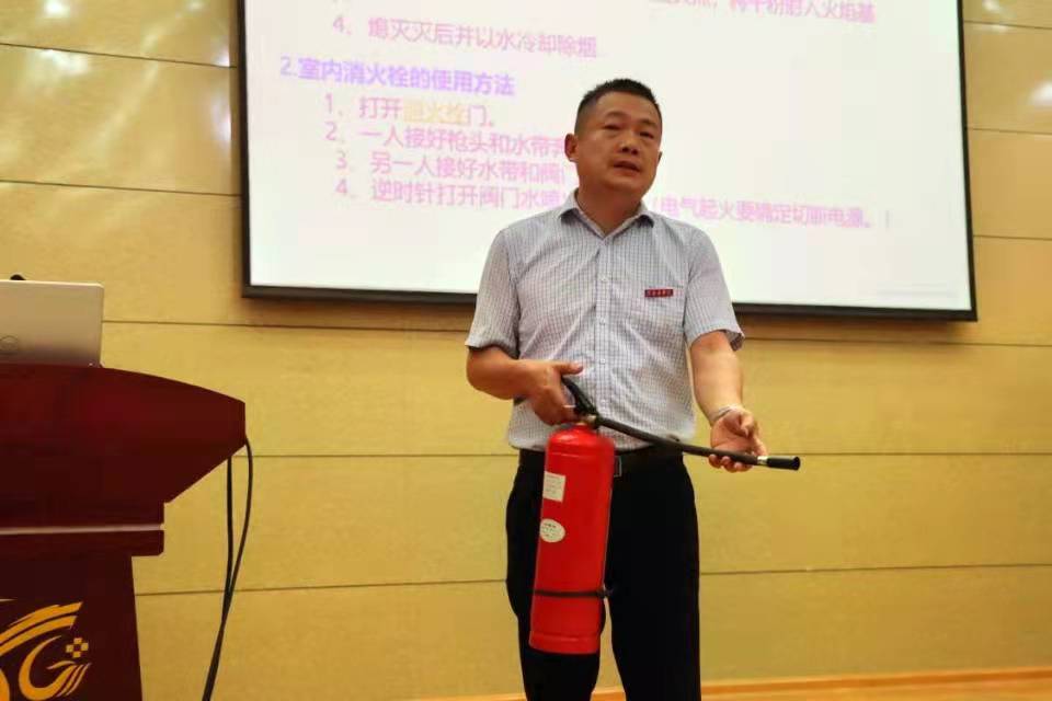 石爱平从近年来各地发生的多起火灾及重大安全事故案例入手,让在座师生感受到火灾的无情以及掌握消防安全知识的重要性。深入浅出地讲解火场逃生及应急疏散的方法和原则,并现场演示了各类灭火器的使用方法。