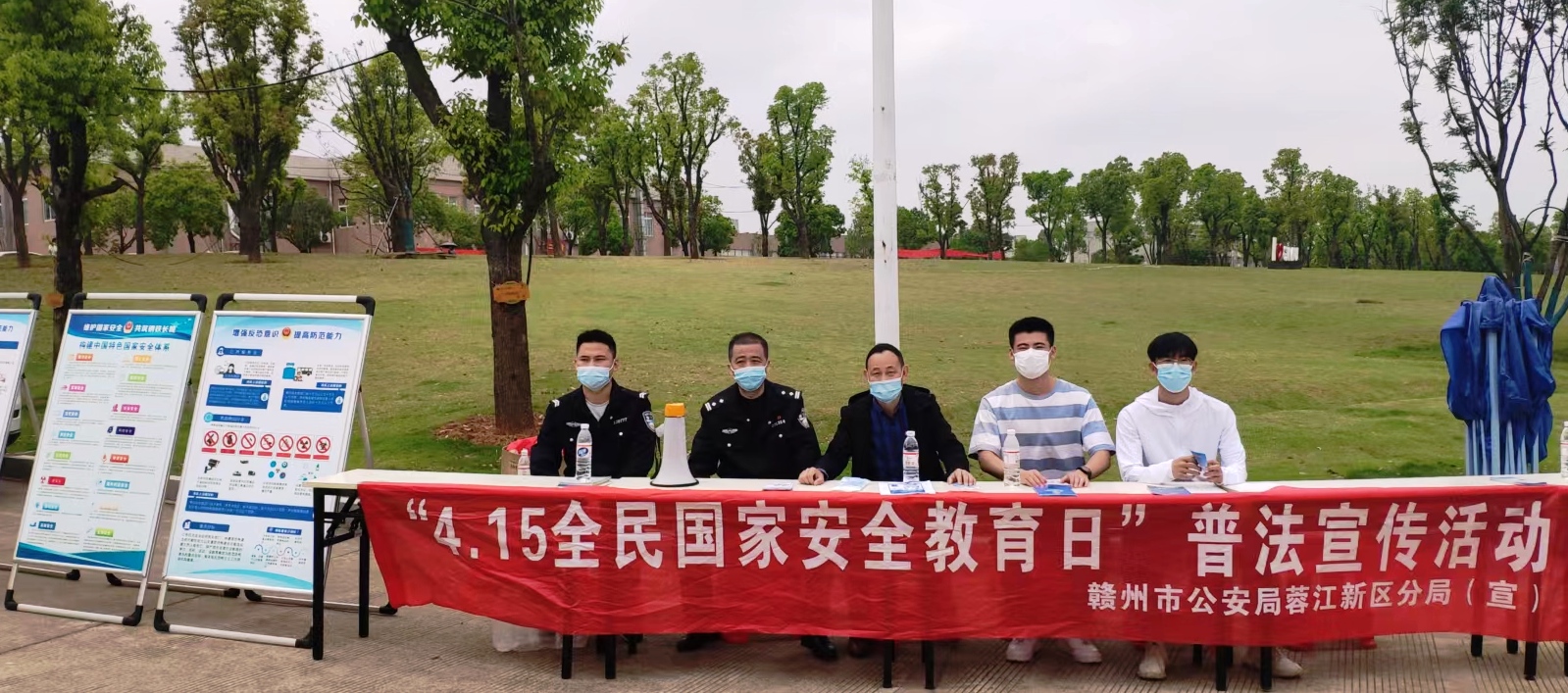 4月15日,赣州市公安局蓉江公安分局与保卫处(人武部)共同举办新时代国家安全成就展,赣州市公安局相关负责危礼军及保卫处(人武部)处长陈建文同志共同为广大师生解读相关法律法规,从多个领域给师生讲解了国家安全的重要性,发放各种国家安全知识宣传资料一千五百余份。