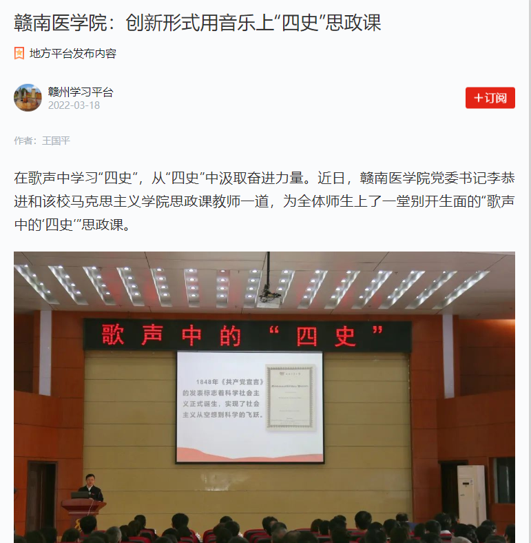 上一篇:《江西党史学习教育网》:赣南医学院:创新形式用音乐上“四史”思政课