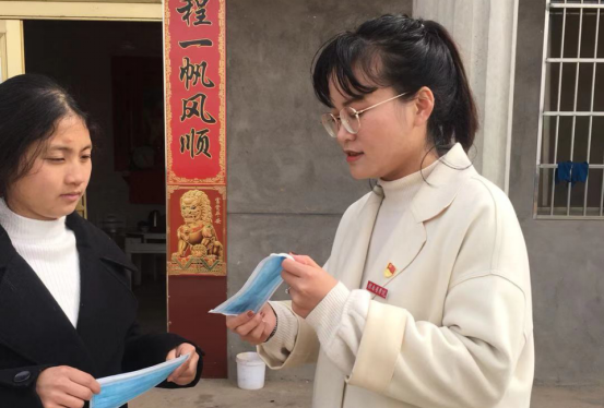 2、共产党员、辅导员胡丹,面对疫情,她主动帮村里书写防疫宣传标语,宣传疫情防控知识。从2020年1月26日开始,她协助父亲所在的村卫生所,每日上午帮村民量体温,耐心解答村民问题。2020年2月1日,她自告奋勇当志愿者协助村里实行管制。