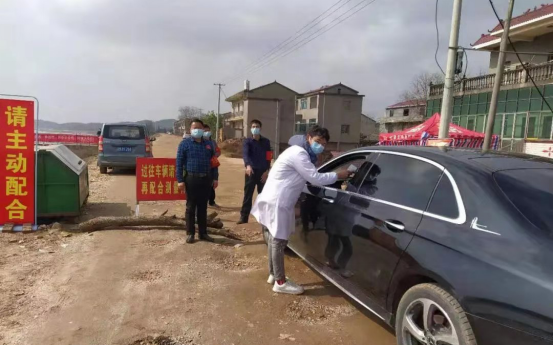 5、预备党员、16级应用心理学专业何辉鹏,主动参与到村里的防疫工作中。在村口站岗,对外来人员进行体温测量,提醒来往村民戴好口罩,减少出门,并派发传单宣传防疫知识,提高村民意识。