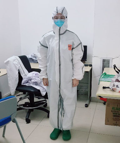 校友宋乐毕业后在兰州大学第一医院放射科工作,大年初二就坚守在发热门诊为疑似患者进行影像学检查。