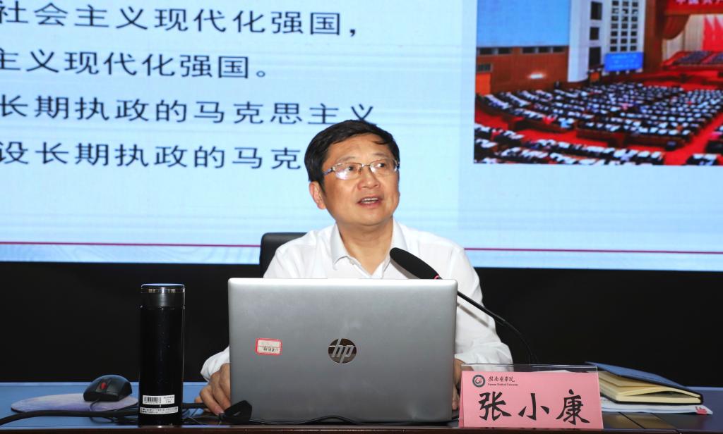 张小康从“全面学习领会习近平新时代中国特色社会主义思想的科学体系”“把学习贯彻习近平新时代中国特色社会主义思想不断引向深入”“着力用习近平新时代中国特色社会主义思想推动学校高质量发展”等三个方面阐述了习近平中国特色社会主义思想的主要内容,并就如何贯彻落实提出了具体要求。
