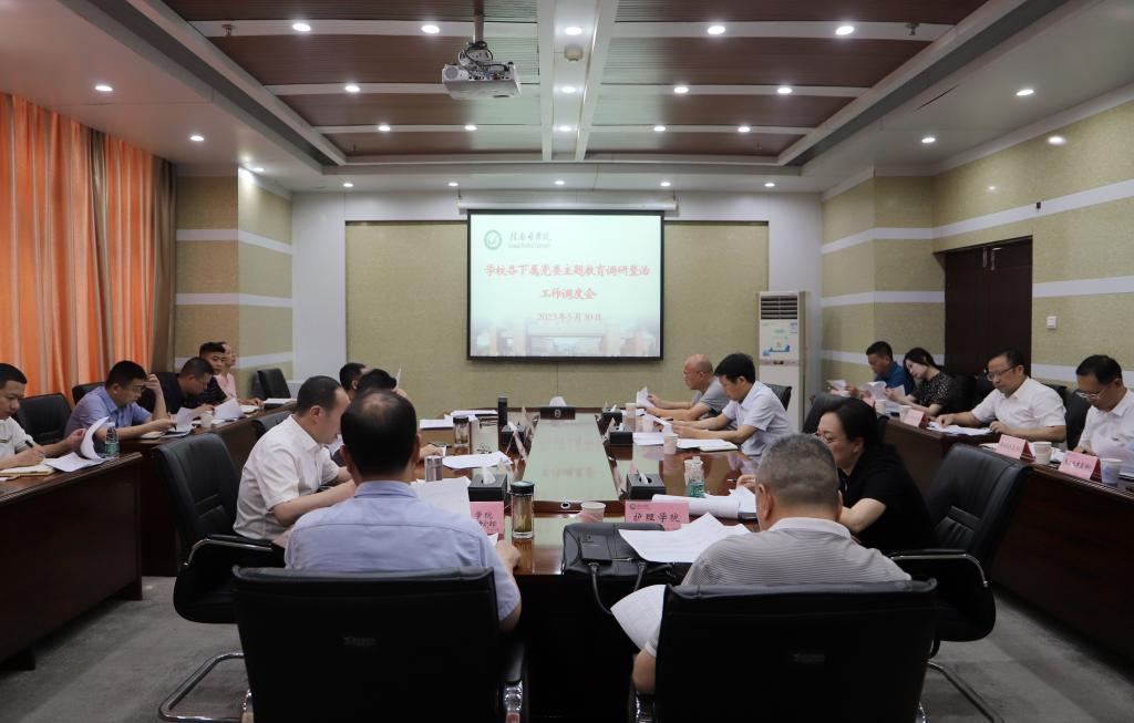 5月30日下午,我校召开下属党委主题教育调研整治工作调度会。学校党委副书记、主题教育领导小组常务副组长曾泽鑫出席并讲话。会议由学校党委委员、统战部部长赖传景主持。