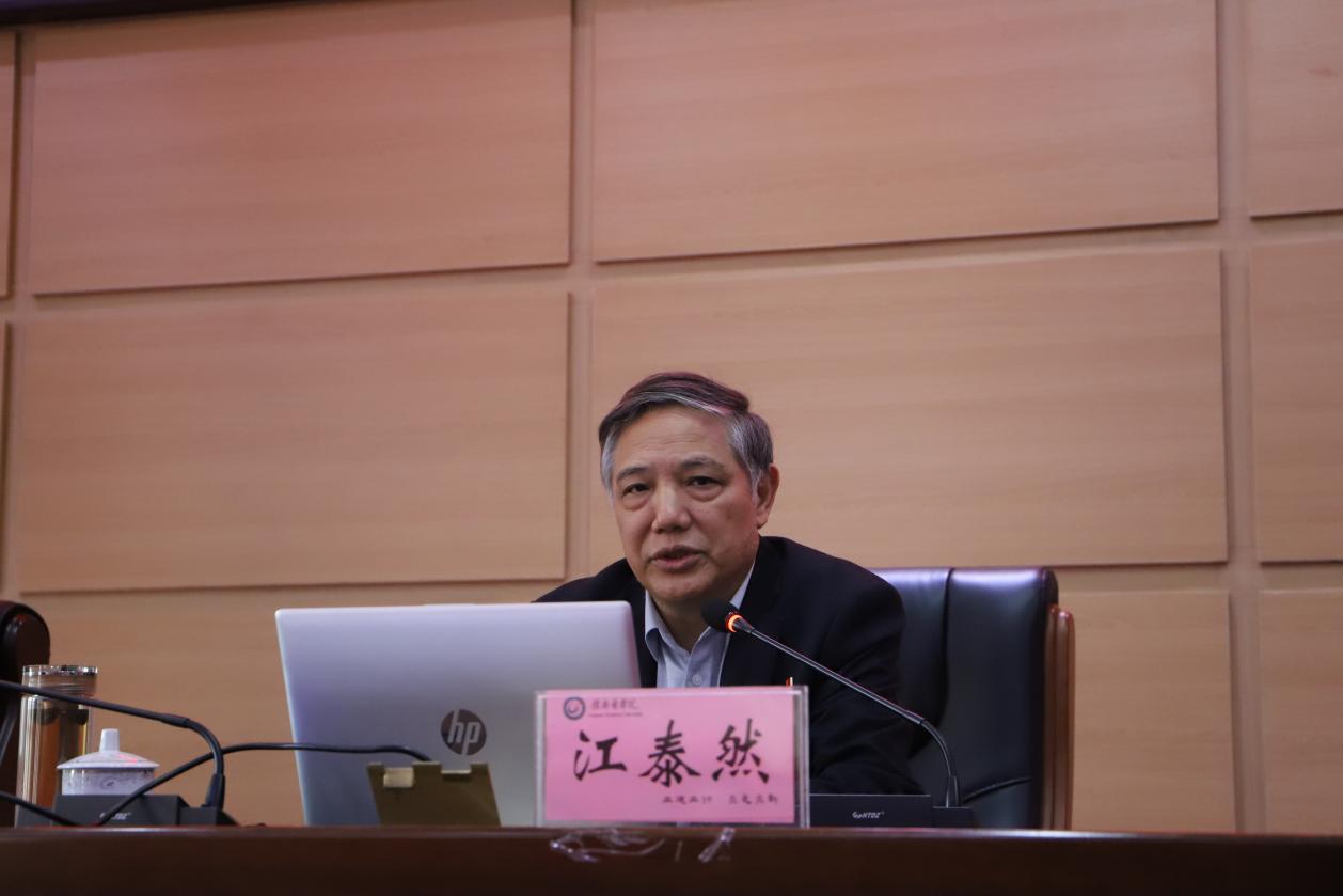 4月27日上午,江西省委党校党史党建教研部主任、二级教授江泰然应邀到我校主题教育专题读书班作题为《坚持不懈用习近平新时代中国特色社会主义思想凝心铸魂》的专题辅导报告。在家的学校党委领导班子成员张小康、曾泽鑫、黄瑞忠、叶军明、彭维杰、赖传景等聆听报告,黄瑞忠主持。