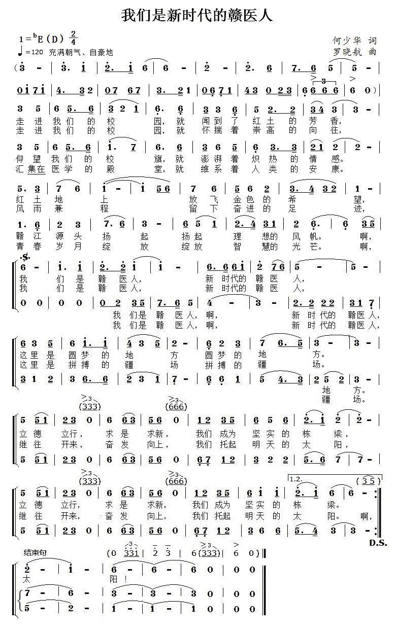 四、赣南医科大学校歌
